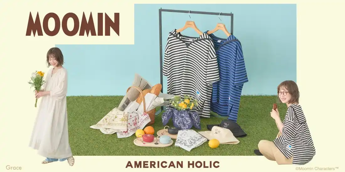 今春、AMERICAN HOLICに『ムーミン』とのコラボコレクションが登場。本コレクションでは、「春・夏のムーミン谷」をテーマに、自分らしく自然体で過ごす心地よさを描いた『ムーミン』の世界観を表現したアイテム全5型を展開いたします。 |
