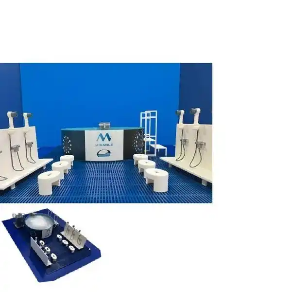 災害時の避難生活において、要望が多い「入浴」。しかし、排水設備が整わない場所では洗剤による環境汚染が課題でした。「ミライ人間洗濯機」の技術を応用した「洗剤を使用しない大浴場キット」では、シャワーヘッドの毛穴より小さい微細な泡で肌を傷つけることなく身体を洗浄し、プールのような大きな特設大浴場で身体を温めることができます。環境負荷を最小限に抑えつつ、被災者の心と体を温める革新的な防災ソリューションです。 |