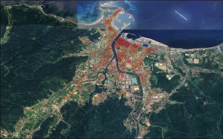 人工衛星が撮影した地震前後の画像から、どの建物がどれだけ被害を受けたかを素早く把握できる仕組みです。宇宙からのデータで被害の大きい建物を特定できます。データ入手後、24時間以内に結果を提供。罹災証明の優先順位付け、避難所配置、支援物資の配分など初動対応を加速できます。復旧・復興期の再建計画や防災対策の事前検討にも活用可能です。 |