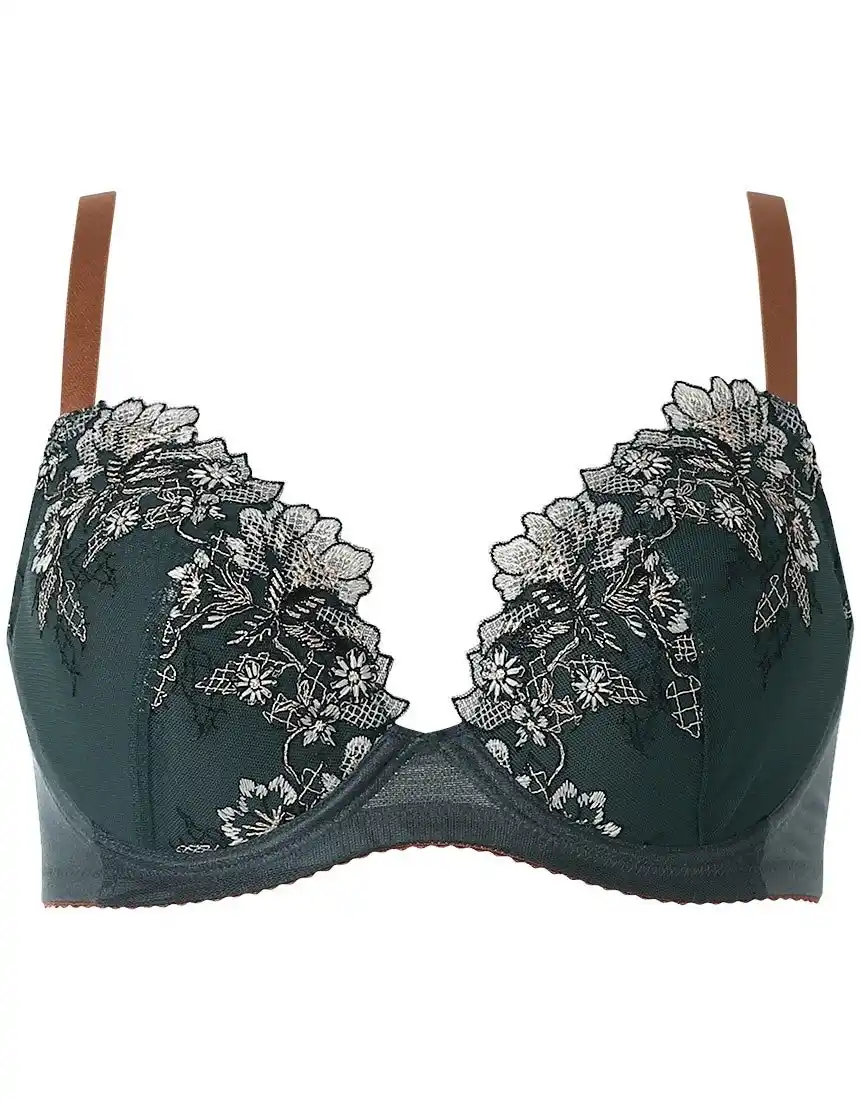 | デザインは、AMPHIの人気シリーズ「Hold Day Bra」のレース柄と連動。線画調の花々をチェック柄で表現したストレッチエンブロイダリーレースを使用し、ロマンティックな印象に仕上げました。ファッション性のある落ち着いたカラー展開も特長です。 | ||||||||||||||
