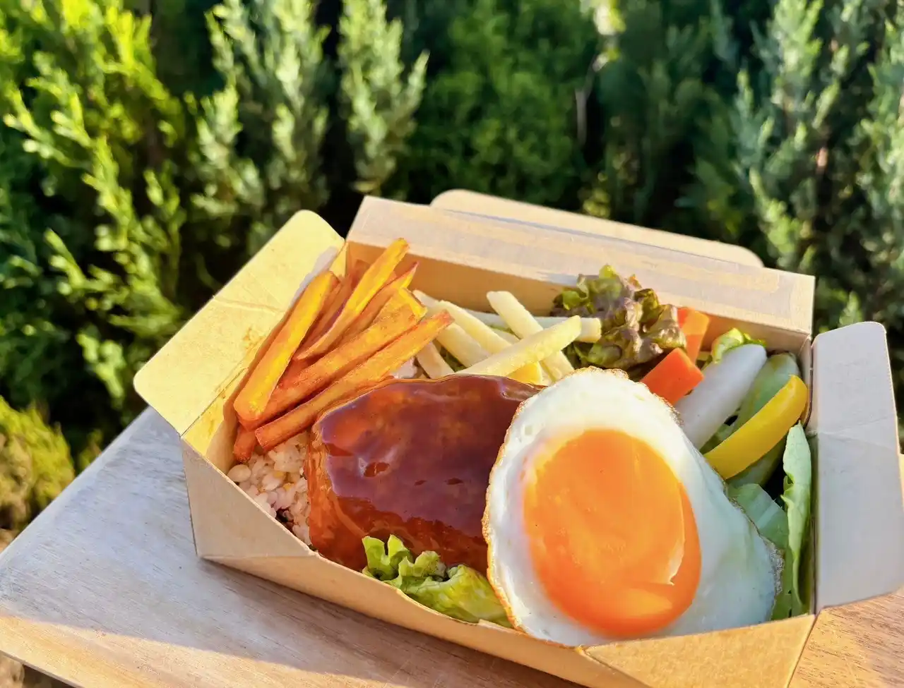 安納芋を食べて育ったオリジナルブランドポーク「安納黒豚」と、自社農園の新鮮野菜、大切に育てたお米を使用した、彩り豊かなランチボックスです。 |