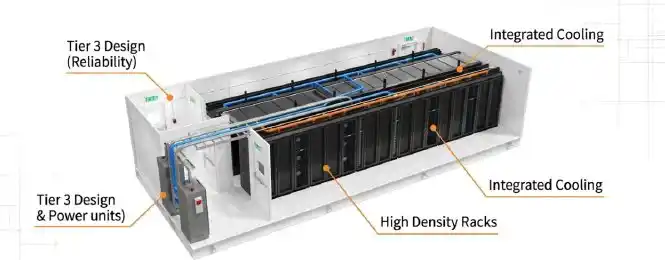 管理された工場環境で製造・統合試験完了後に搬入。Tier 3相当の信頼性を確保 |
