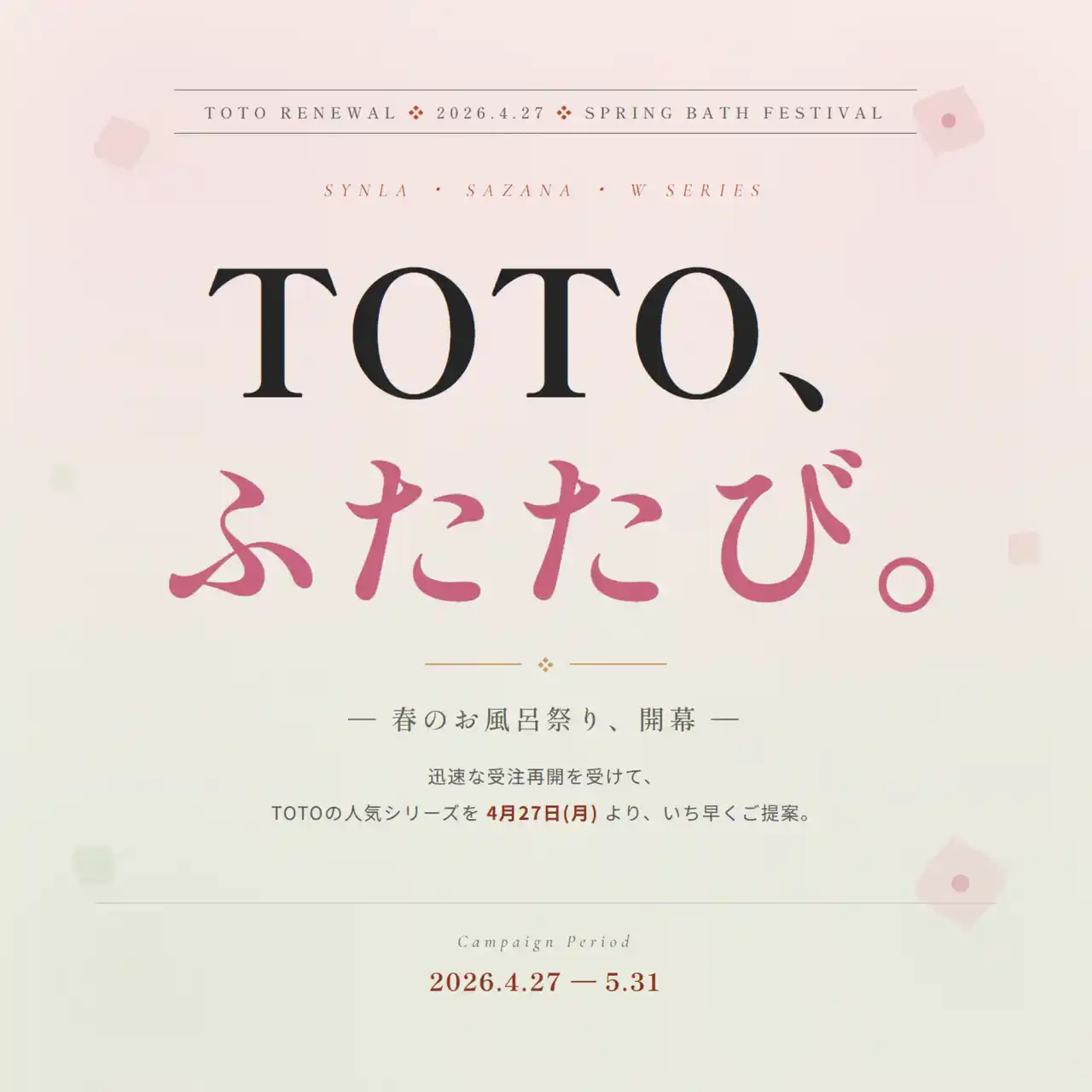 ■ 「TOTO、ふたたび。× 春のお風呂祭り」キャンペーン概要 |