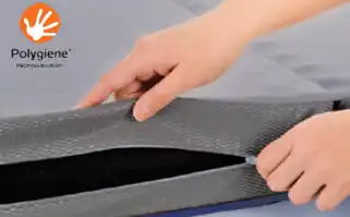 上層のウレタンフォームには「Ag+抗菌加工」(SIAA認証取得)、側地に「抗菌防臭加工(ポリジン加工)」を施しています。側地は取り外して丸洗いできます。 |