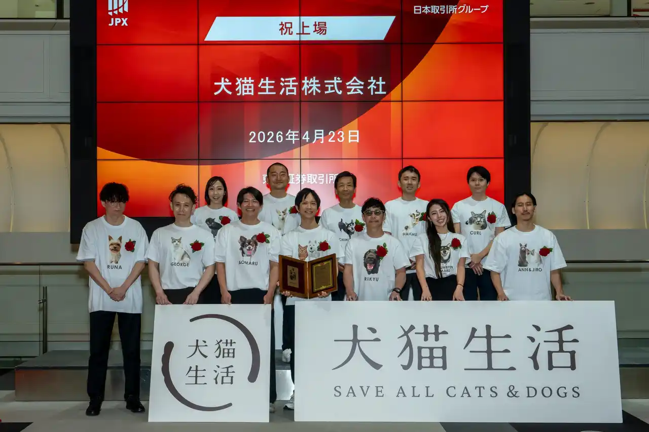 | 犬猫生活株式会社(本社:東京都新宿区、代表取締役社長:佐藤淳、以下「犬猫生活」)は、本日2026年4月23日、東京証券取引所グロース市場へ新規上場いたしました。 | |||