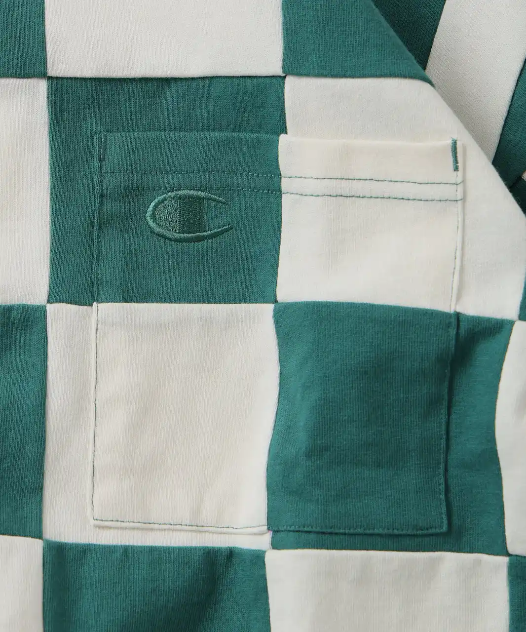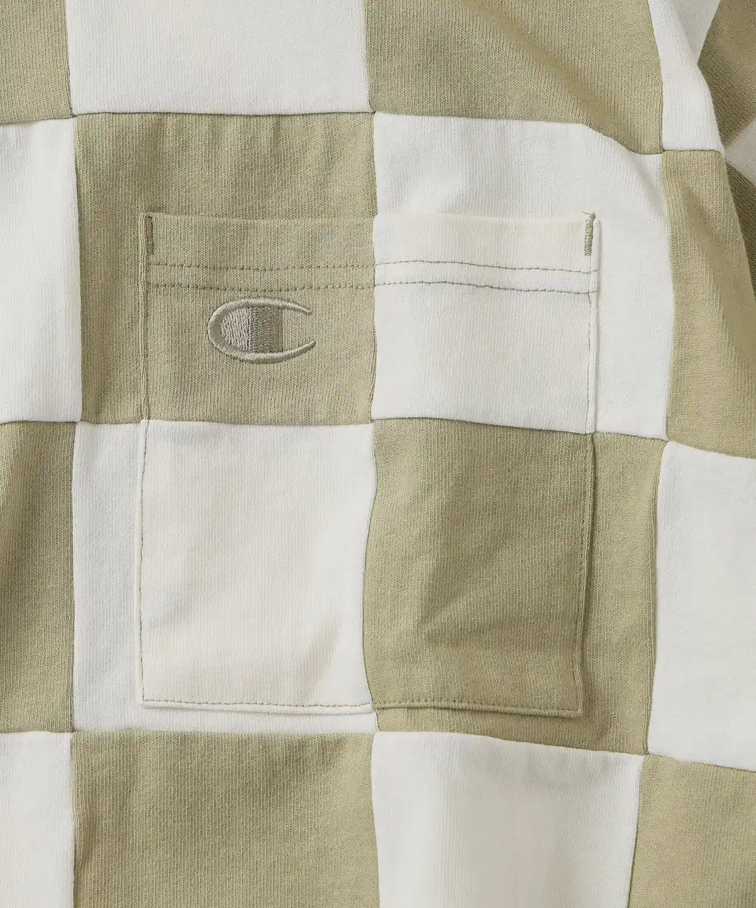 Tシャツプリントでは表現できない、圧倒的な立体感と存在感を追求したパッチワークTシャツ。2色の生地をスクエア状に裁断し、一枚ずつ縫い合わせることでチェッカーフラッグ柄を構築。凹凸のある表情と奥行きが、夏のシンプルなスタイリングに強いアクセントを加えます。CHAMPIONとのコラボレーションにおいても、これまでにない手の込んだ一着に仕上がりました。 |