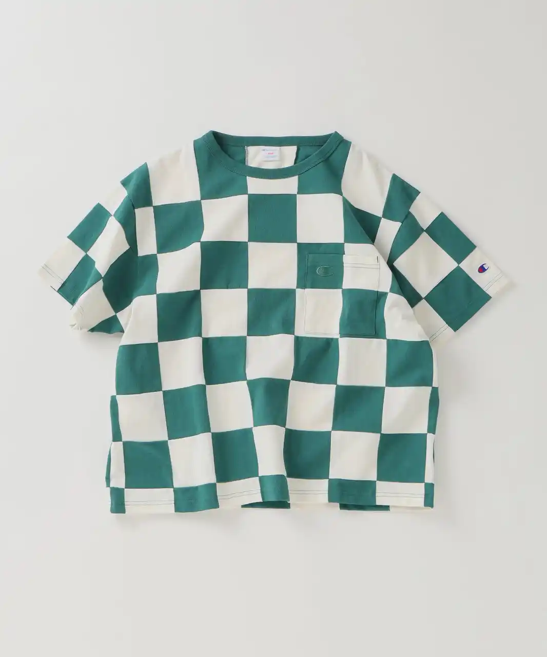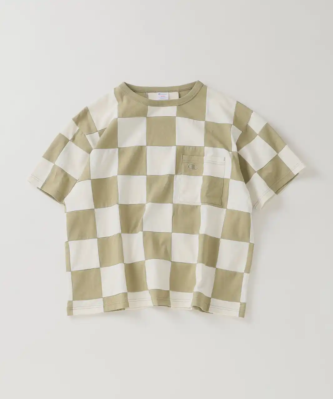 ■CHAMPION 別注 パッチワーク チェッカーフラッグ Tシャツ |