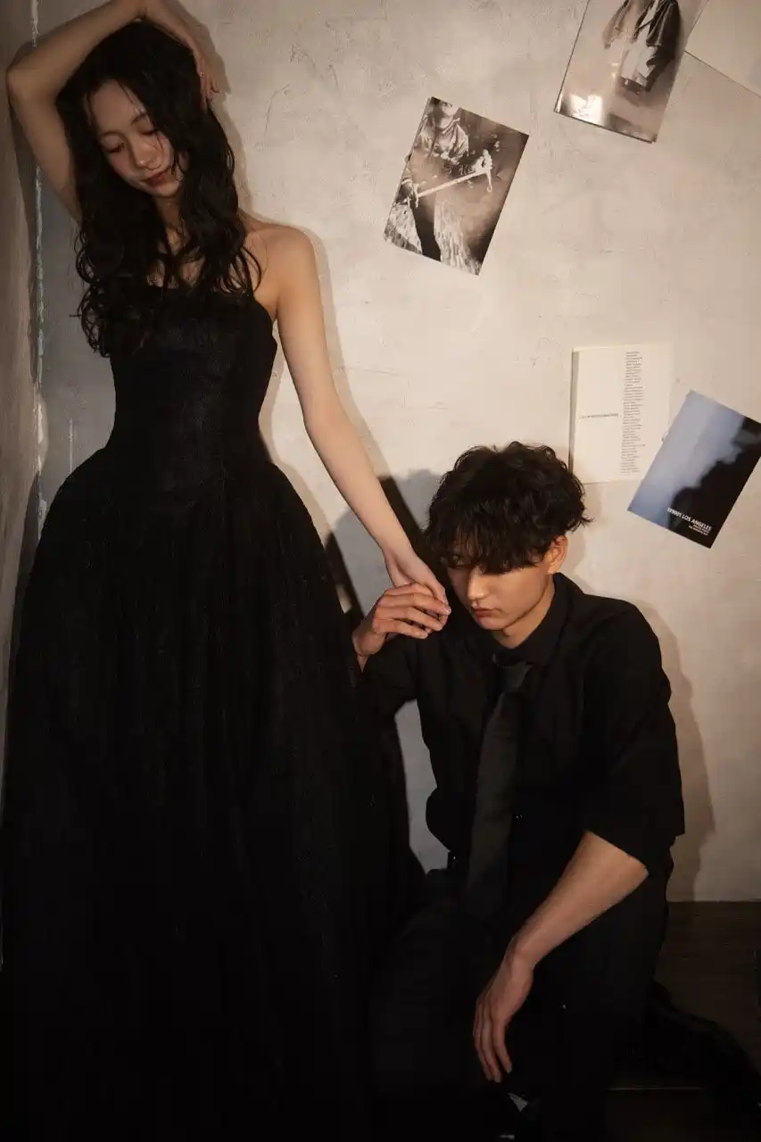 ・ブラックドレスによるシックでクールなスタイリング ・コントラストを活かしたライティングによる立体感 ・作り込みすぎない空間演出によるリアリティと余韻 ・ファッションフォトのような構図とポージング 従来のブライダルフォトにありがちな「幸福感の演出」だけではなく、被写体そのものの存在感を引き出すことに重点を置いています。 |