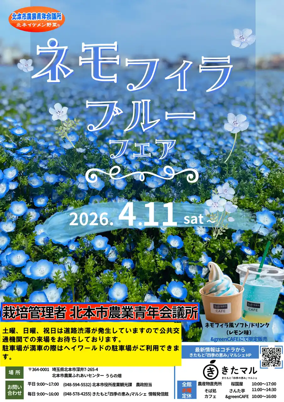 「きたもと『四季の恵み』マルシェ」裏で一面のネモフィラが見られます!