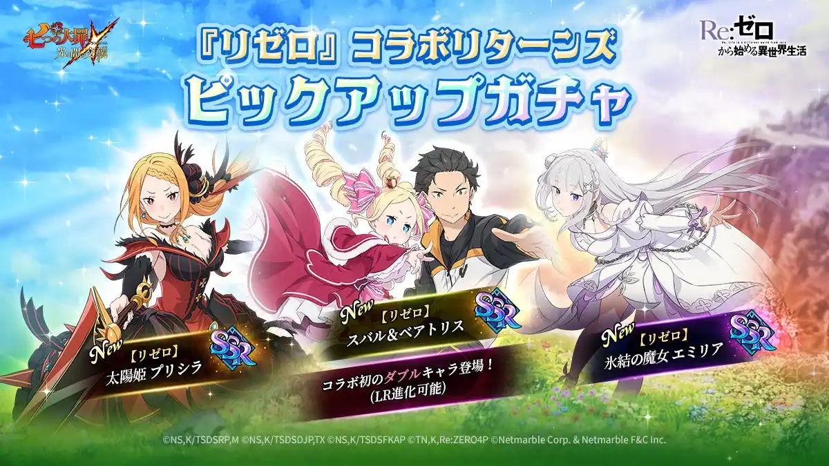 ◆『グラクロ』×『リゼロ』ピックアップガチャ開催!新規コラボキャラ【リゼロ】スバル&ベアトリス、【リゼロ】氷結の魔女 エミリア、【リゼロ】太陽姫 プリシラが登場! |
