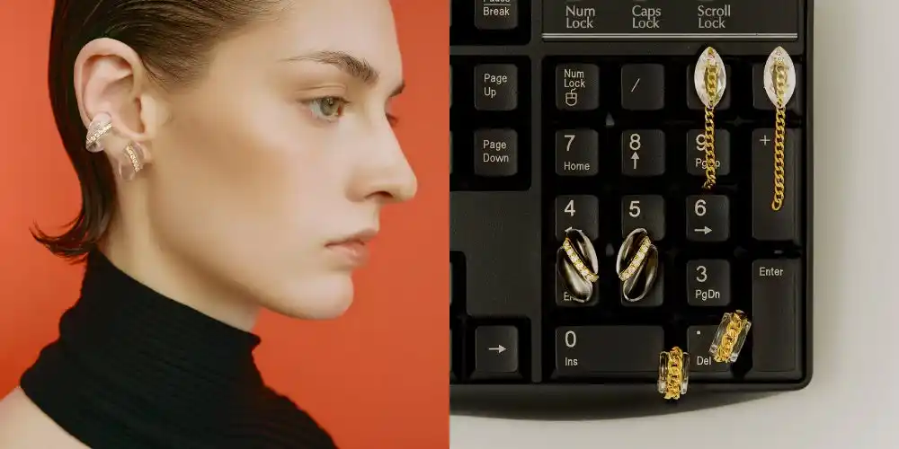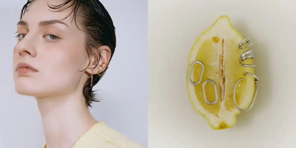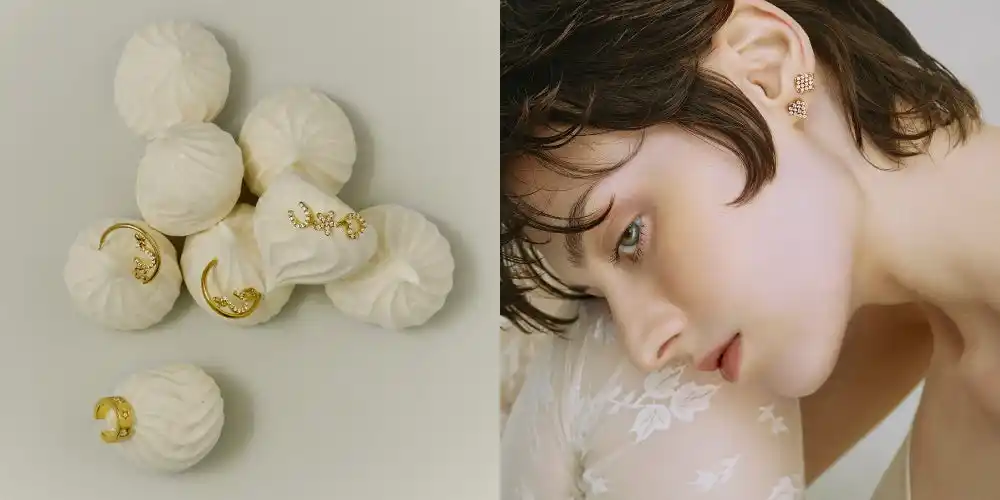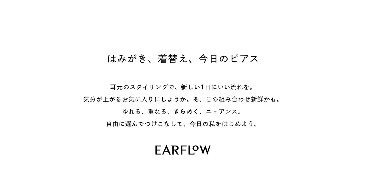今回のリブランディングでは、イヤージュエリー<EARFLoW>をブランドの中心となるアイテムに据え、耳元から楽しむスタイリングを提案します。ピアス、イヤーカフ、イヤリングを自由に組み合わせ、その日の気分やシーンに合わせて“今日の耳元”を楽しむ。 |
