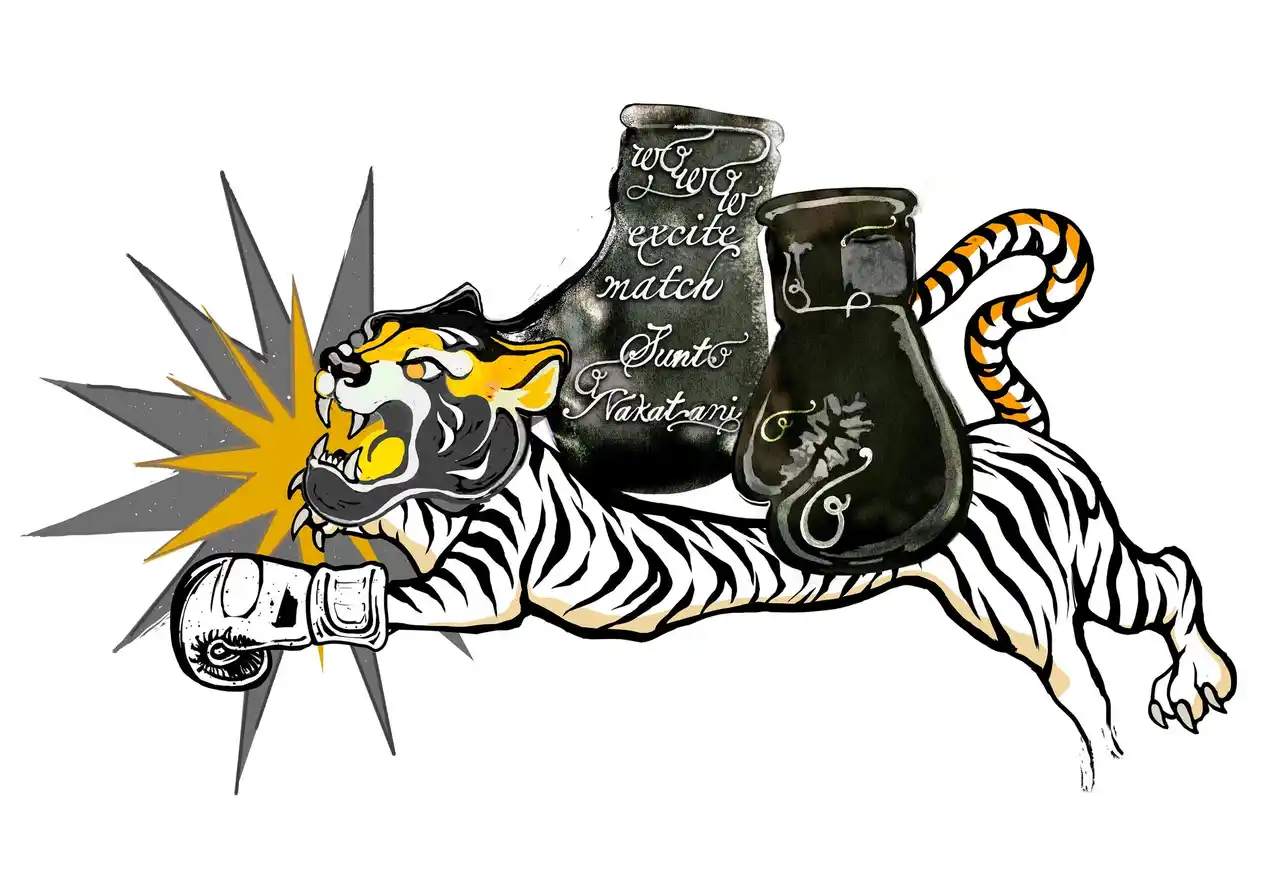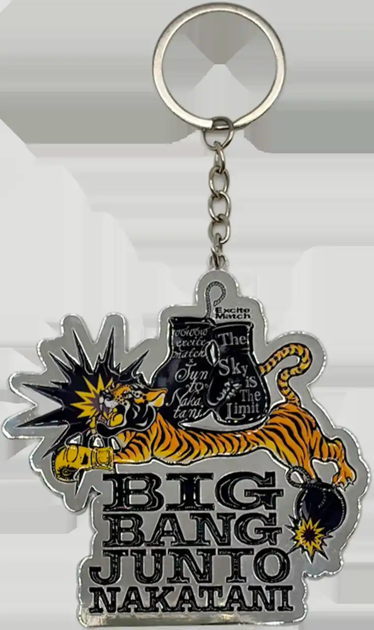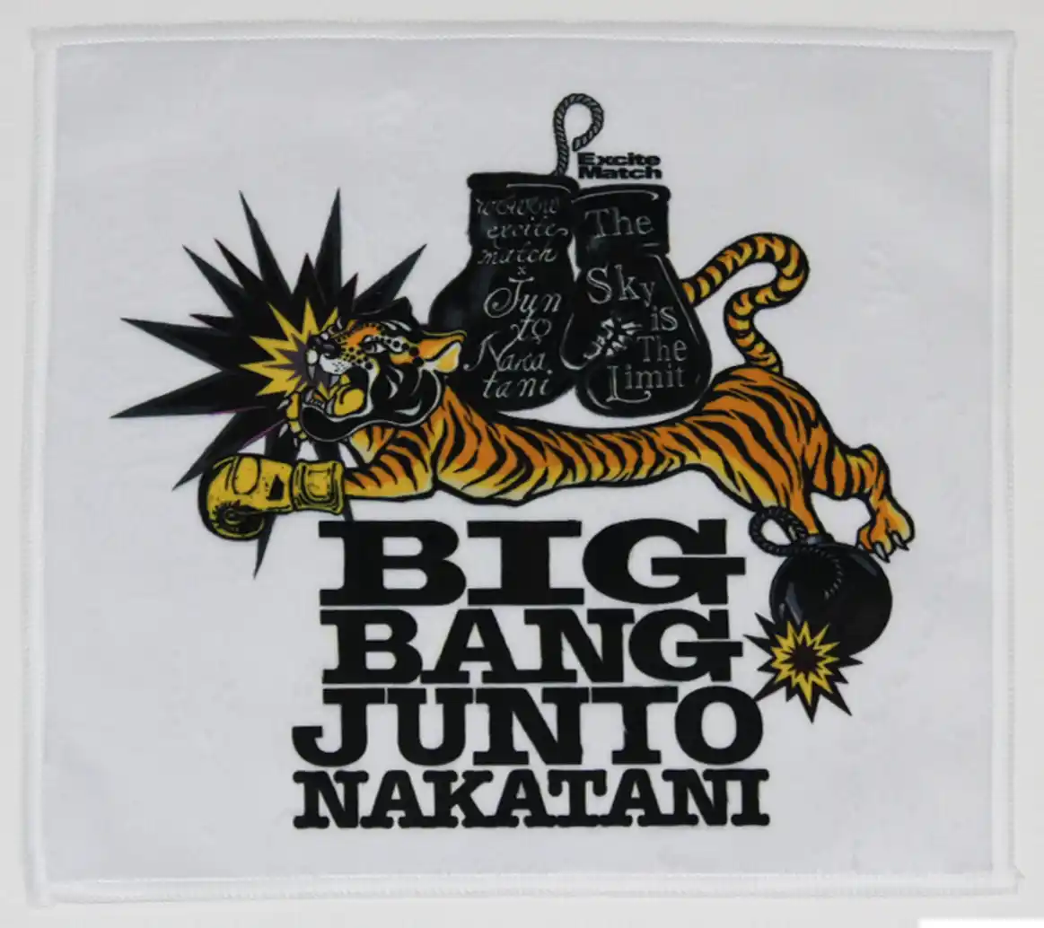 3. 中谷潤人×ExciteMatch タイガーステッカーセット ¥1,500(税込) 躍動感あふれるトラと「BIG BANG」のロゴがインパクト抜群のステッカーセット。スマートフォンやPCなど、お気に入りのアイテムに貼って自分だけのカスタマイズをお楽しみいただけます。 |