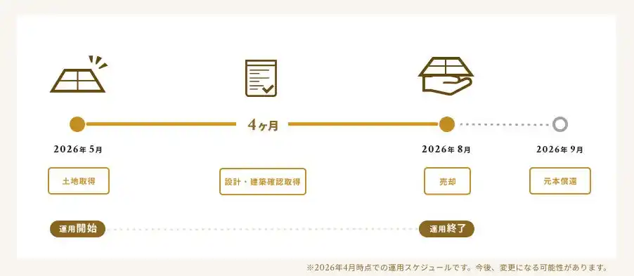 設計完了および建築確認取得後、データセンター用地として売却し、配当・元本償還を行います。 |