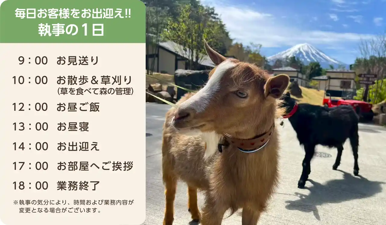 富士山の絶景と本格アウトドア体験が楽しめる「HANZ OUTDOOR RESORT」に、新たなスタッフが加わります。その名も、ヤギのタロとジロ。 |
