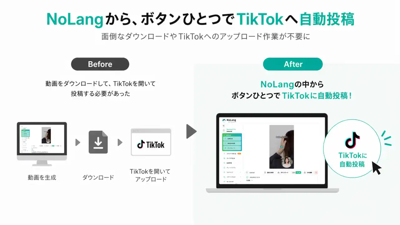 ■動画生成からTikTok投稿までNoLang上でワンストップに完結 |
