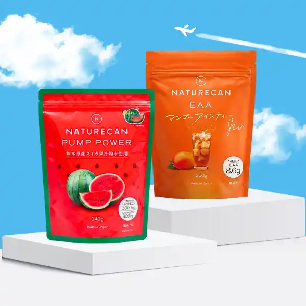 筋肉の合成を支える「EAA(マンゴーアイスティー)」と、爆発的なパワーと巡りを生み出す「PUMP POWER(熊本産スイカ)」を組み合わせた、本気で結果を求める方のための特別セットです。 |