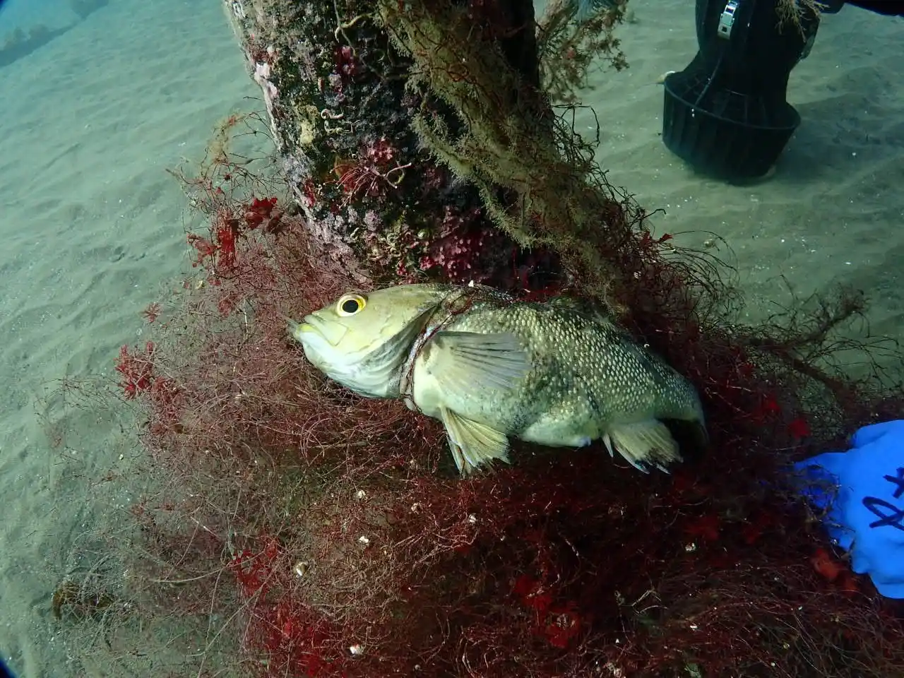 漁網に絡まったエゾメバル |