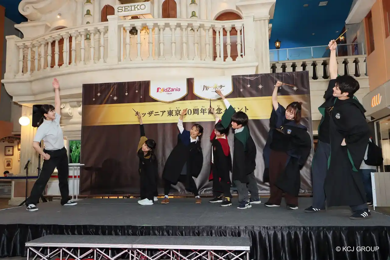 | こどもの職業・社会体験施設「キッザニア」を企画・運営するKCJ GROUP 株式会社(本社:東京都中央区、代表取締役社長:圓谷 道成、以下 KCJ GROUP)は、2026年10月5日(月)に日本上陸20周年を迎える「キッザニア」のアニバーサリー企画として、舞台『ハリー・ポッターと呪いの子』とのコラボレーションによる期間限定「舞台の仕事に挑戦!~“魔法使い”を演じよう~」を、2026年6月1日(月)から8月31日(月)までの約3ヶ月間、キッザニア東京にて実施いたします。 | |||||||||