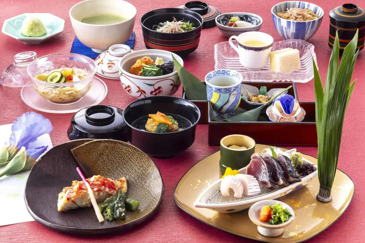 鹿児島食材や郷土の味を随所に散りばめた月替わりのコース。5月は、端午の節句にちなんだ晴れやかな仕立てでお迎えします。造りで旨みあふれる鹿児島県産鰹のたたきが味わえるほか、さつま揚げやかるかんといった鹿児島ゆかりの味も登場。旬の味覚とともに、薩摩に思いを馳せる優雅な昼膳をお楽しみください。 |