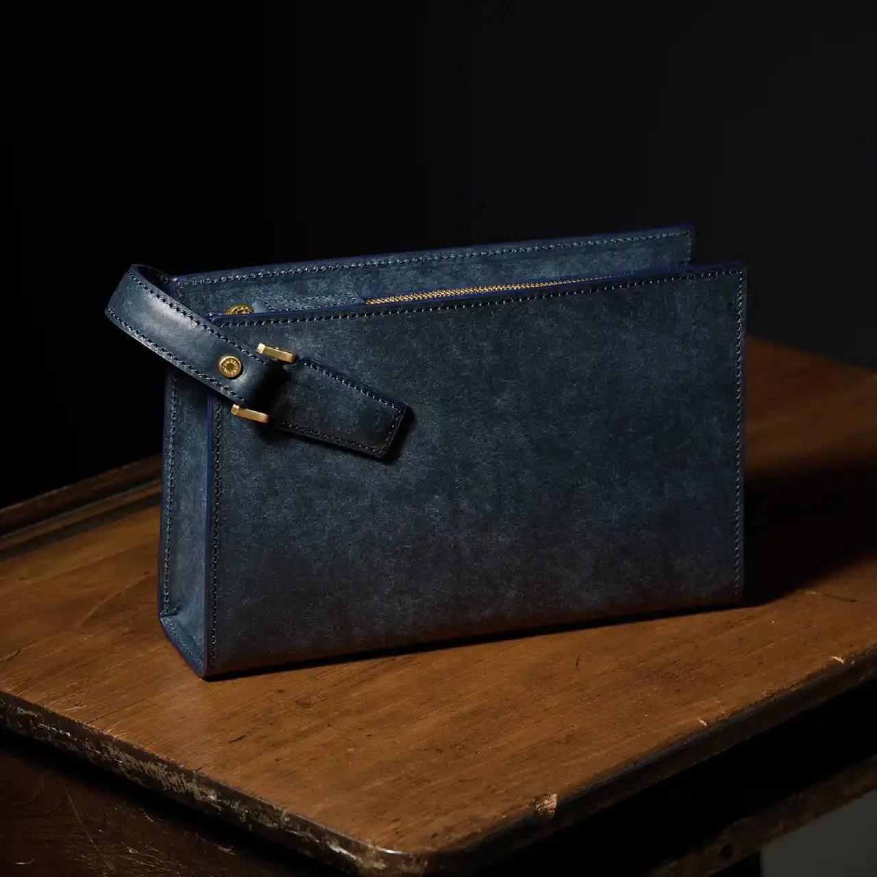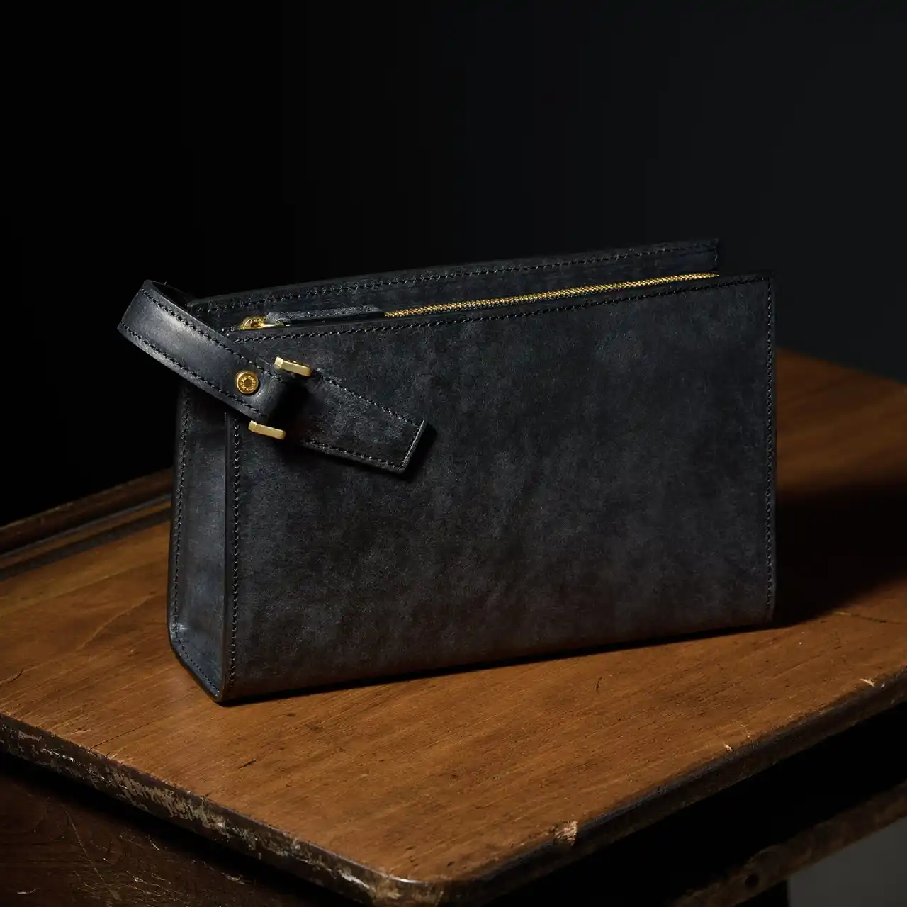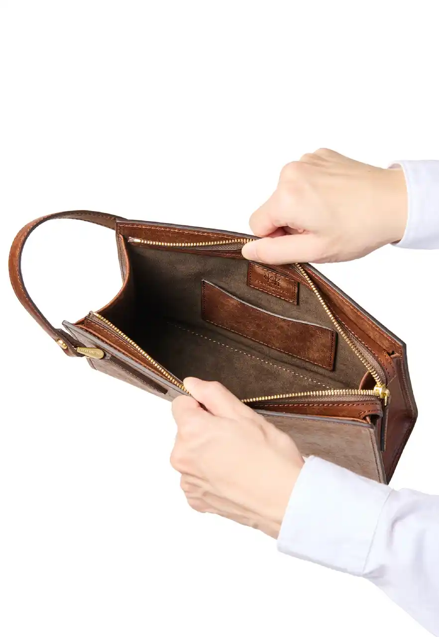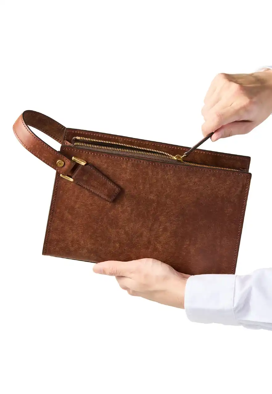 クラシカルな佇まいのセカンドバッグ。 表面にはプエブロレザー特有の起毛が広がり、使い込むほどに艶へと変化していきます。 |