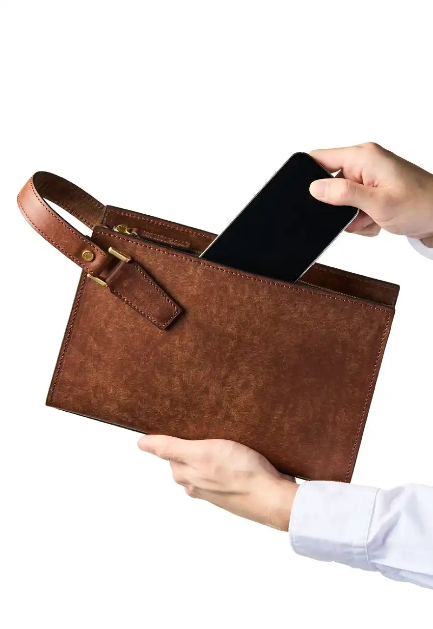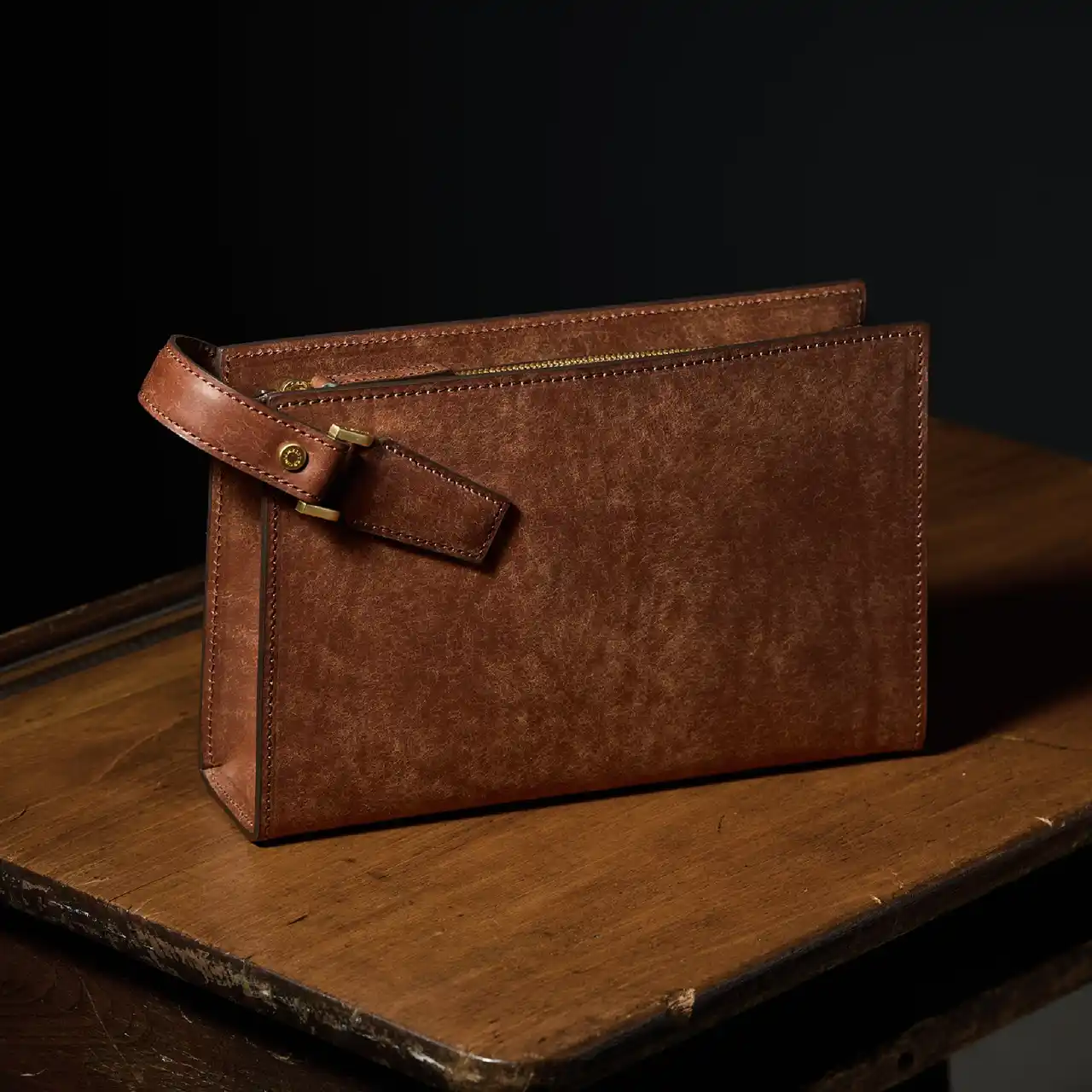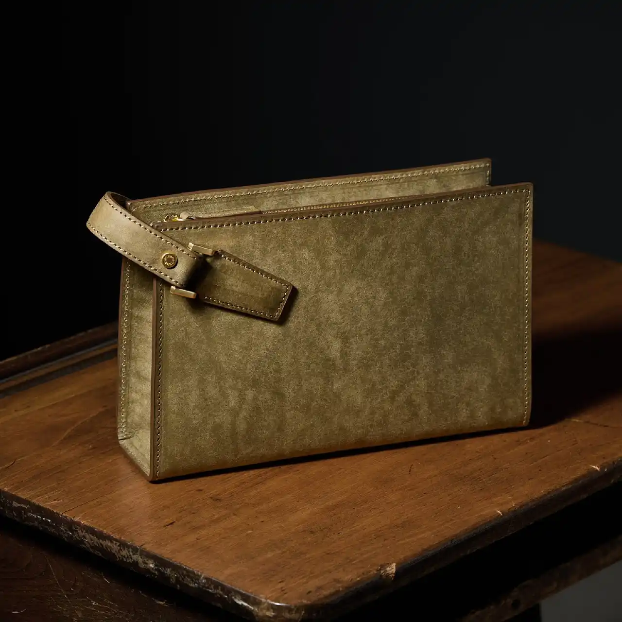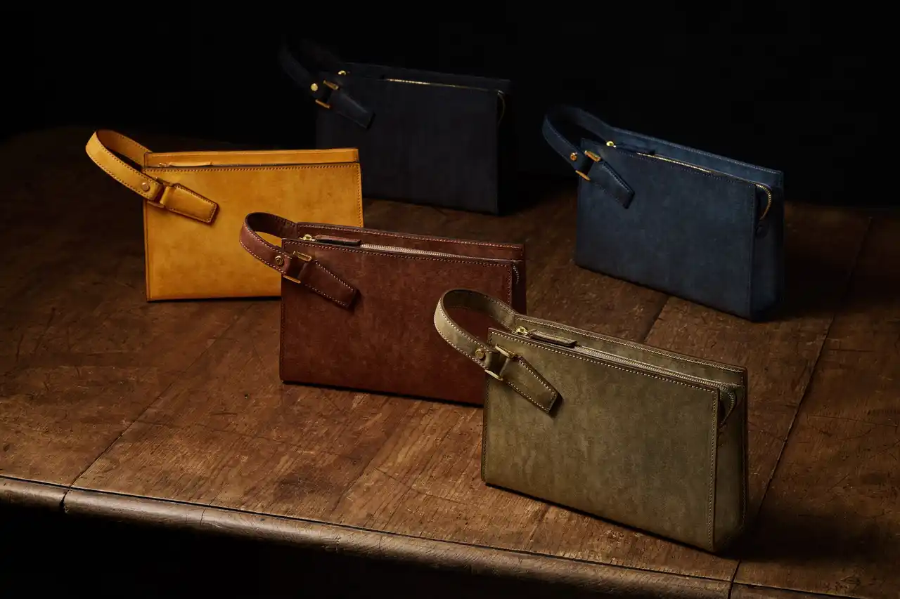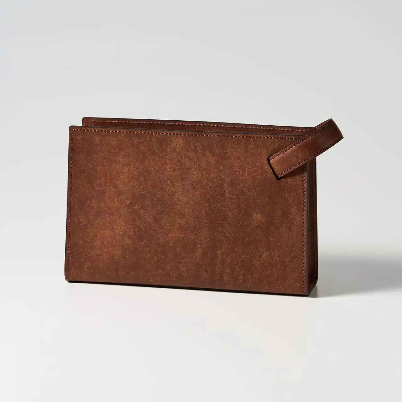 クラシカルな佇まいのセカンドバッグ。 表面にはプエブロレザー特有の起毛が広がり、使い込むほどに艶へと変化していきます。 |