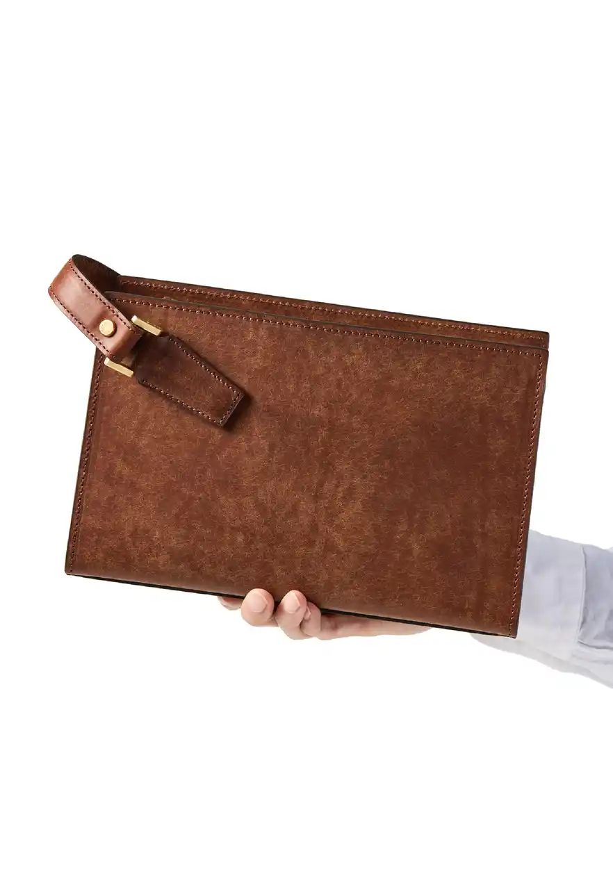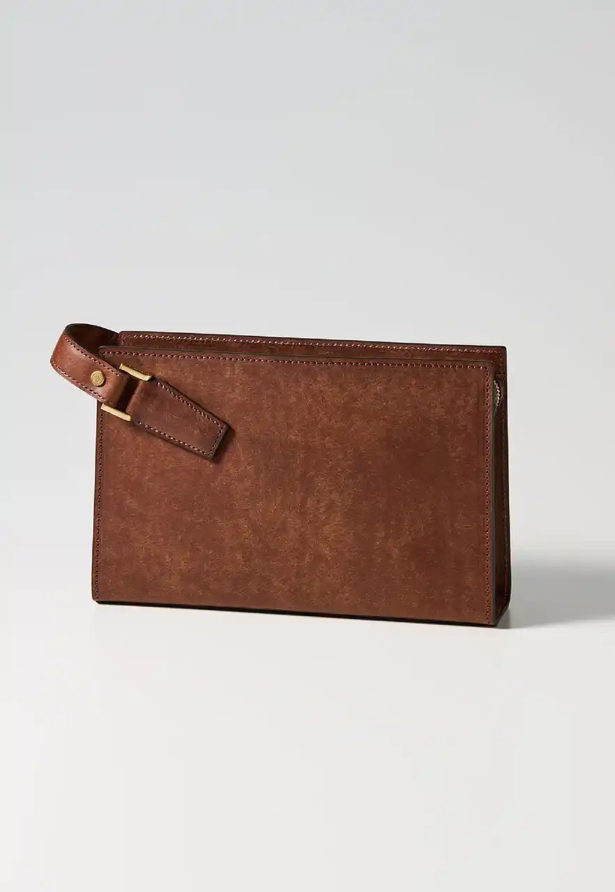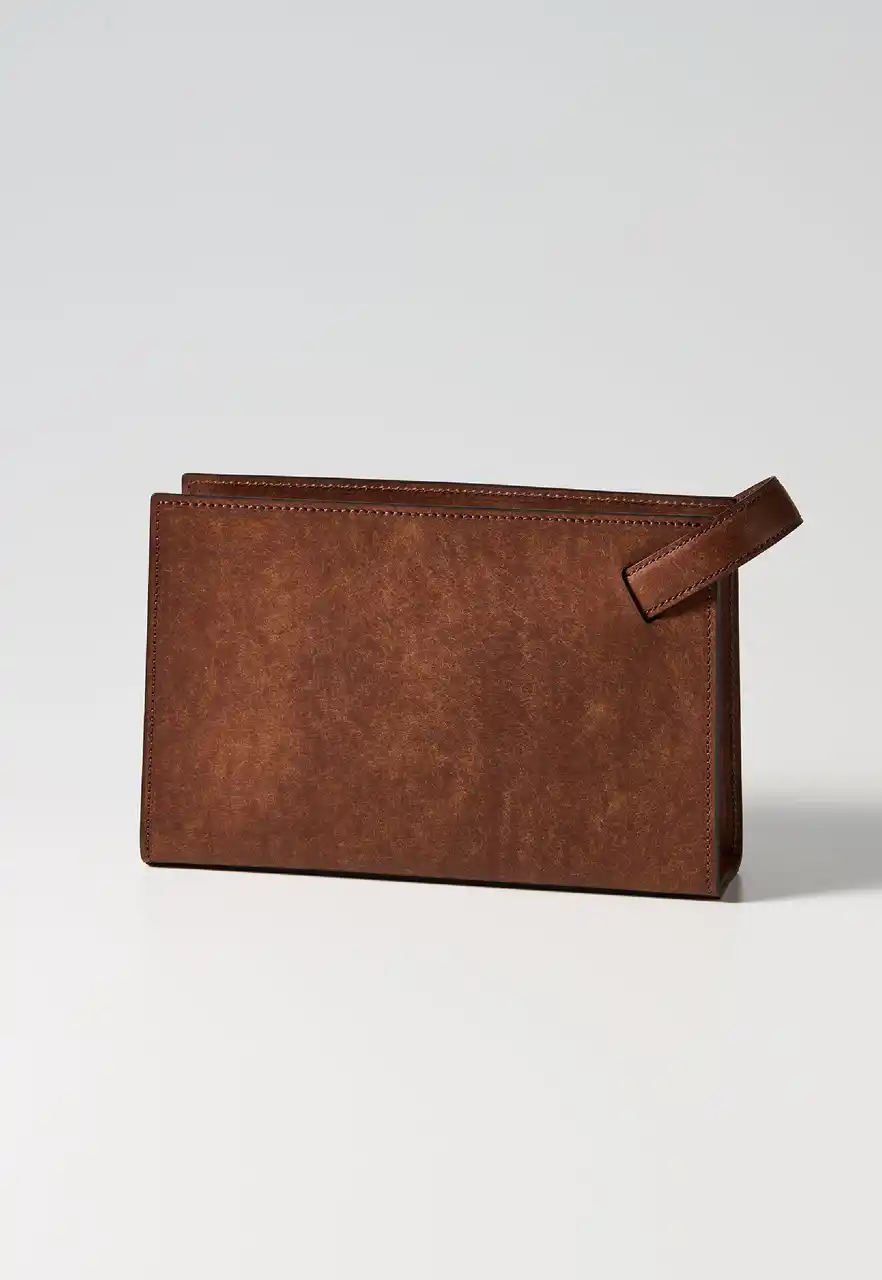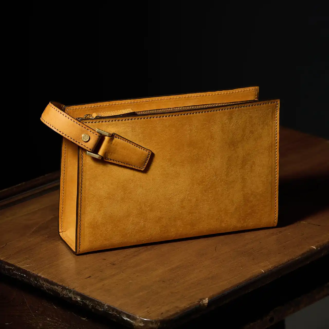 クラシカルな佇まいのセカンドバッグ。 表面にはプエブロレザー特有の起毛が広がり、使い込むほどに艶へと変化していきます。 |
