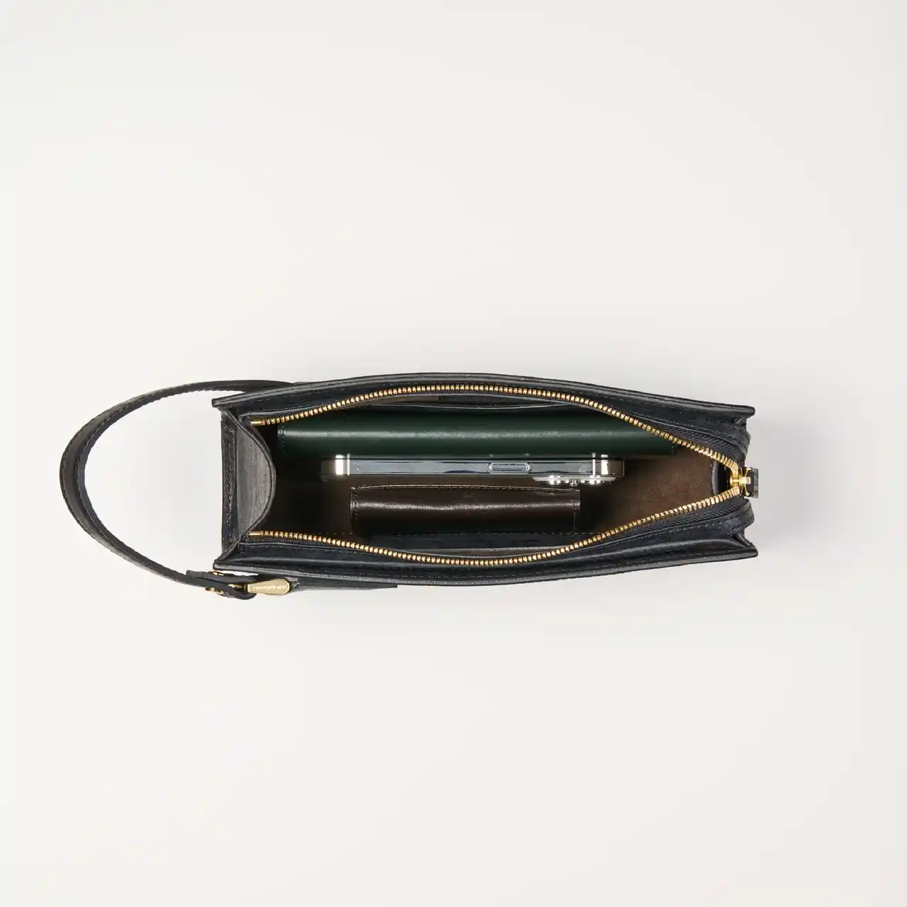 開口部はファスナー仕様で大きく開き、内部が見渡しやすい設計。 内装にはポケットを備えており、小物類を整理しながら収納することができます。 |
