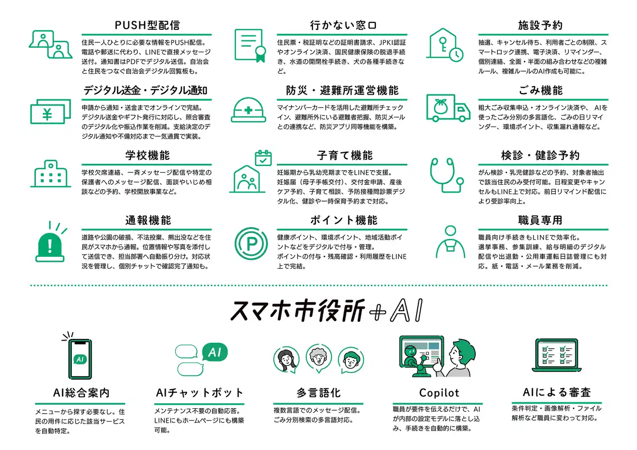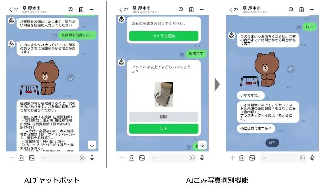 AIチャットボットやAIごみ写真判別機能を実装し、住民の質問に即時対応。 |