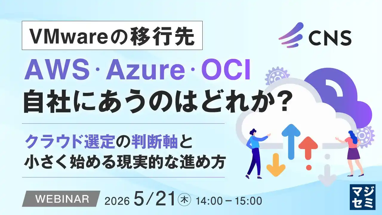 | マジセミ株式会社は「VMwareの移行先、AWS・Azure・OCI 自社にあうのはどれか?」というテーマのウェビナーを開催します。 |
