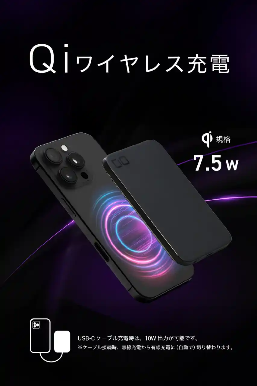 本製品は、厚さわずか4.98mm、重さ約82gという極限まで薄く・軽い設計で、スマートフォンに重ねても“持っていないかのような”一体感をもたらします。Appleの「Find My(探す)」機能にも対応し、なくしやすいモバイルバッテリーに“安心”をプラス。さらに、MagSafe対応のQiワイヤレス充電・USB-C有線充電・パススルー充電にも対応し、必要な時に、すぐそばにあるバッテリーとして活躍します。 |