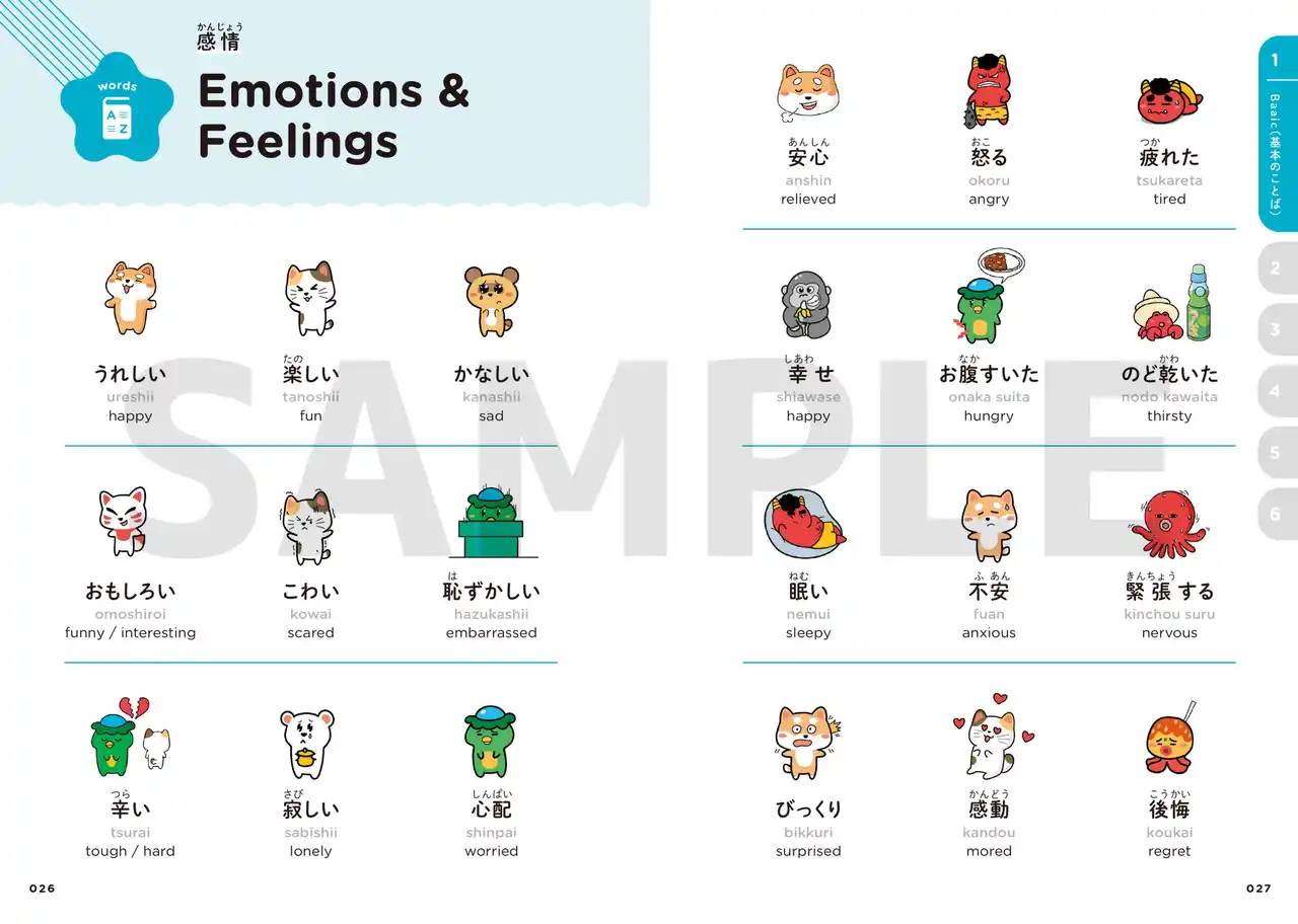 日本語学習を始めたらまず身につけたい単語・フレーズを2000以上収録。日本での生活にすぐ役立つ“使える日本語”を、楽しく、やさしく学べる一冊です。 |