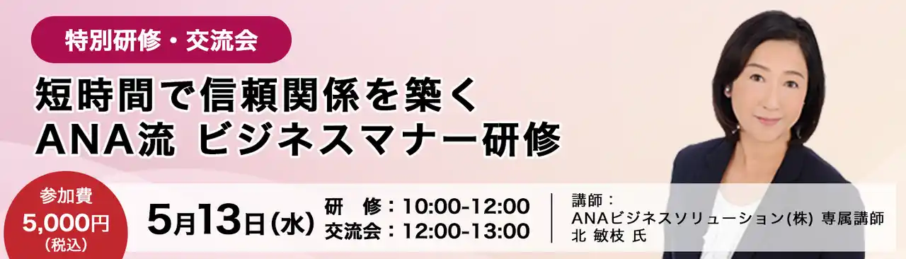 本研修では、ANAグループが長年培ってきた「相手視点で信頼を築くため」のエッセンスに加え、 現代のビジネスシーンに即した対応力を高めるポイントを短時間で凝縮して体験いただけます。 ビジネスマナーのブラッシュアップはもちろん、 「社内研修を検討している」「まずは一度体感してみたい」という企業様向けのプログラムです。 研修後には、講師を交えた交流会を開催。 直接講師へ質問する機会に加え、参加者同士の意見交換を通じて、学びを実務につなげる時間をご用意します。 |