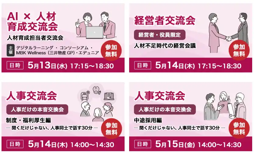 企業内人材育成や人手不足解消のためのAI活用に関するトークセッションと交流会です。 |