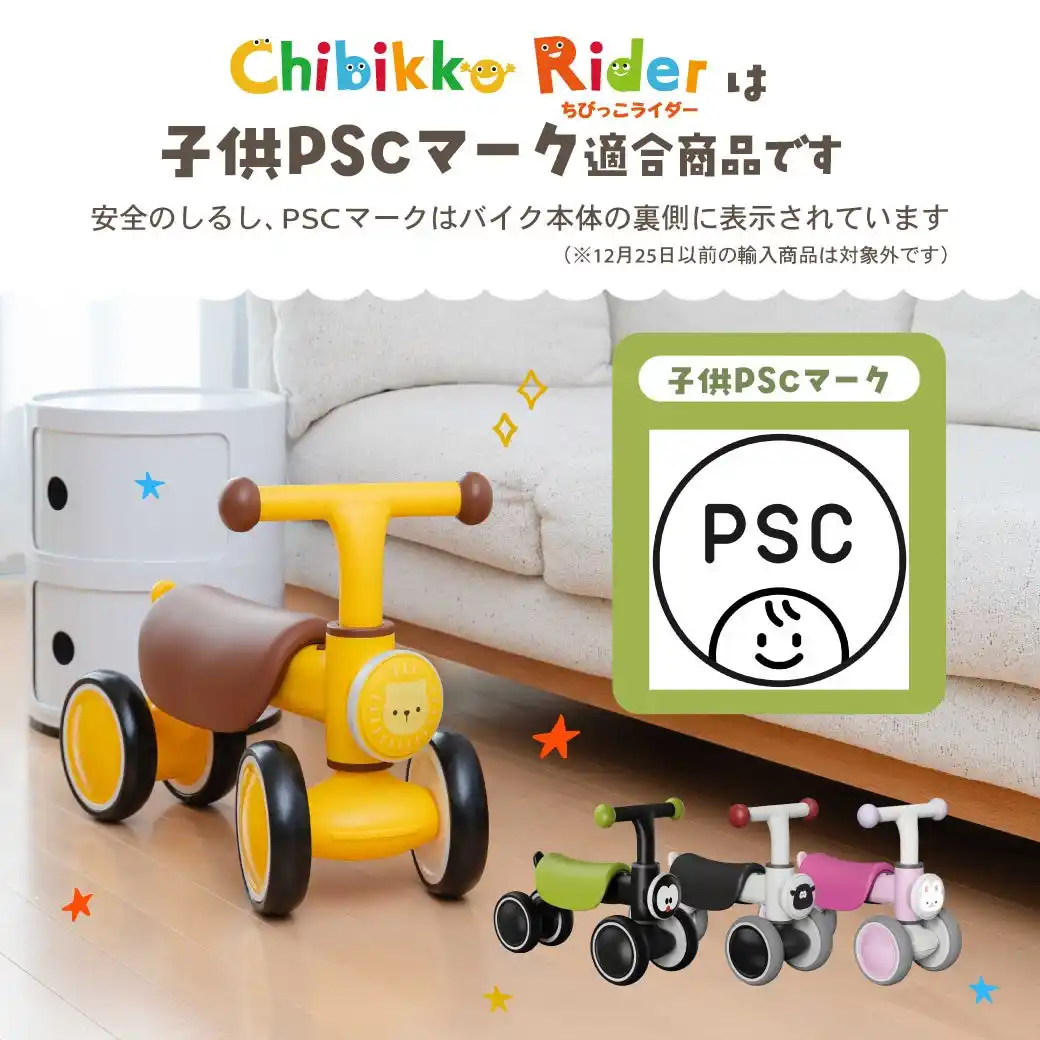 対象製品: 2025年12月25日以降に輸入・販売されるすべての「ちびっこライダー」が対象となります。 |