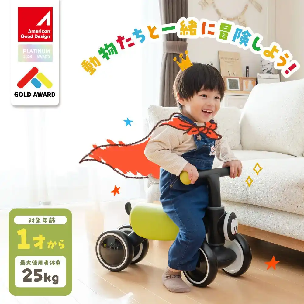 動物をモチーフにした愛らしいデザインで、見た目からお子様の心をグッとつかみます。その優れたデザイン性と機能性が評価され、米国のデザインアワード『American Good Design Award 2024』でPLATINUM AWARD/GOLD AWARDを受賞しています。お子様が使うものだからこそ、安全性はもちろん、インテリアとして置いておきたくなるような洗練されたフォルムを追求しました。 |