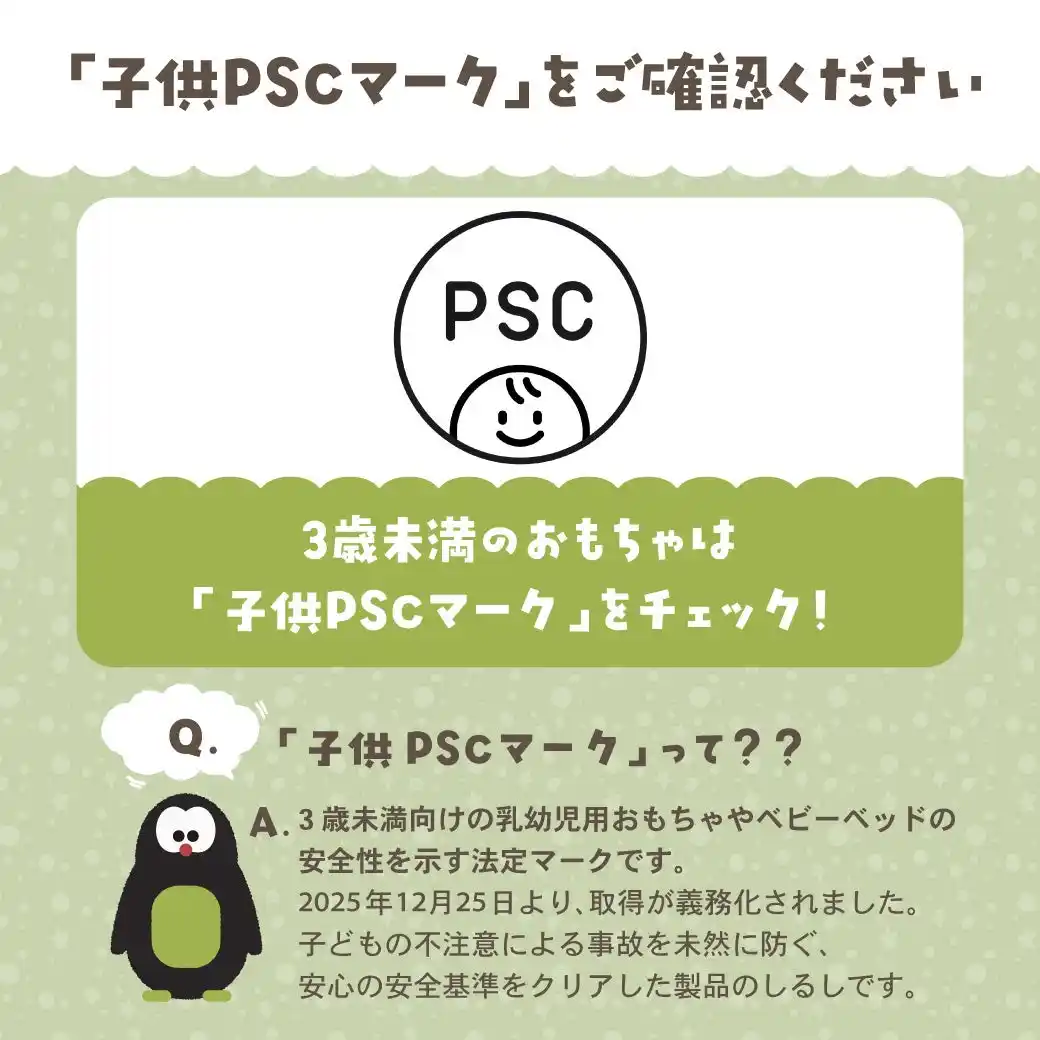 2025年12月25日より義務化された、3歳未満向け玩具の安全基準「子供PSCマーク」 |