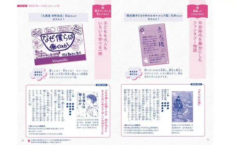 part2では加藤シゲアキさん、上白石萌音さん、ラランド・ニシダさん、宇賀なつみさん、井上咲楽さんの本との出会いやおすすめ本をご紹介。本屋さんの歩き方や本の探し方なども載っています。「本の楽しさってなんだろう?」についてぜひお子さんとお話ししてみてください。 |