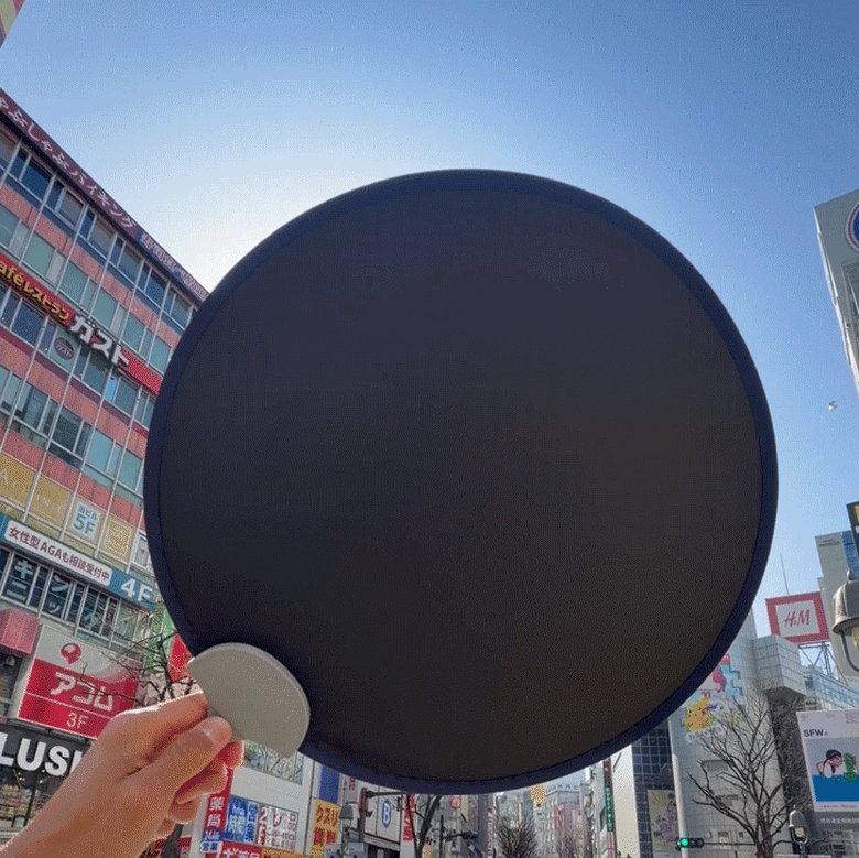 スポーツ観戦、フェス、テーマパークなど、視界確保のために「日傘禁止」とされるエリアでも、コンパクトなポントシェードなら使用可能。原宿のような大混雑の通りでも、周囲の邪魔にならずに自分だけの影を確保できます。 |