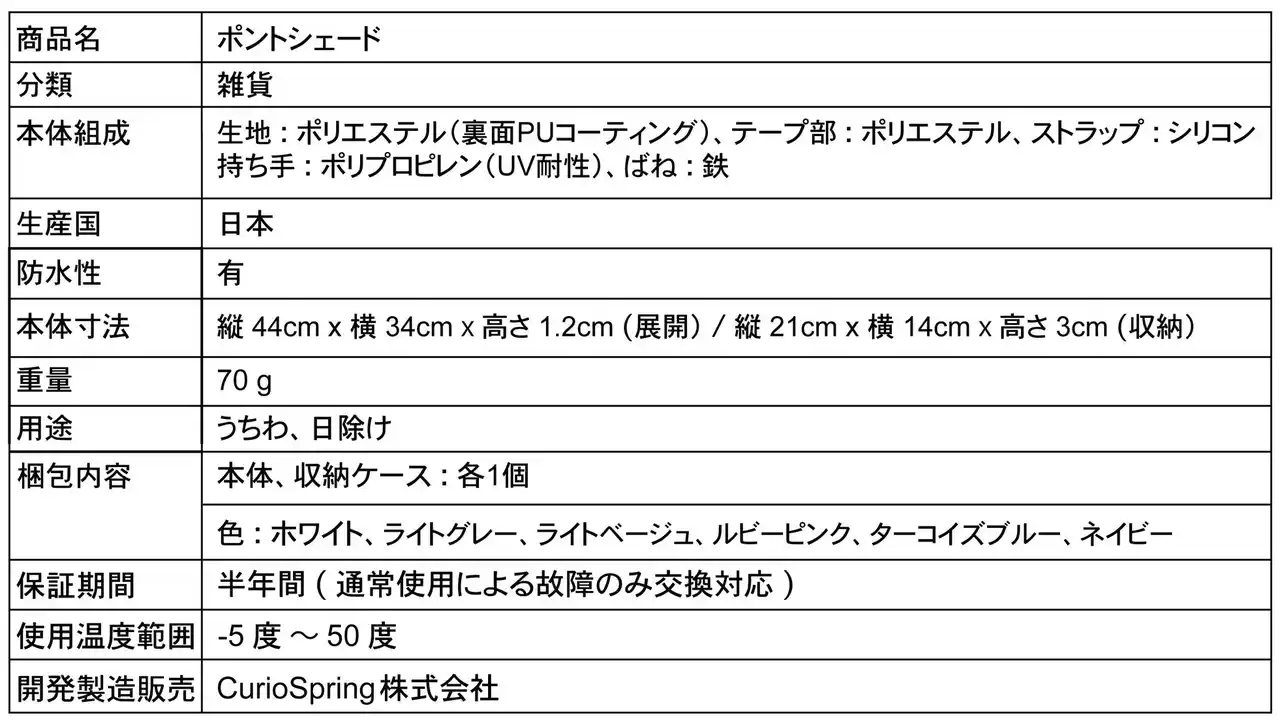 CurioSpring株式会社(山梨県甲府市、代表取締役 : 大森渉)は、2025年にMakuakeで500万円を超える支援を集め、1,500個を完売した日除け機能付きうちわ「ポップシェード」をアップデート。新ブランド「ポントシェード」として、2026年4月24日(金)午前10時より、Makuakeにて先行販売を開始いたします。 |