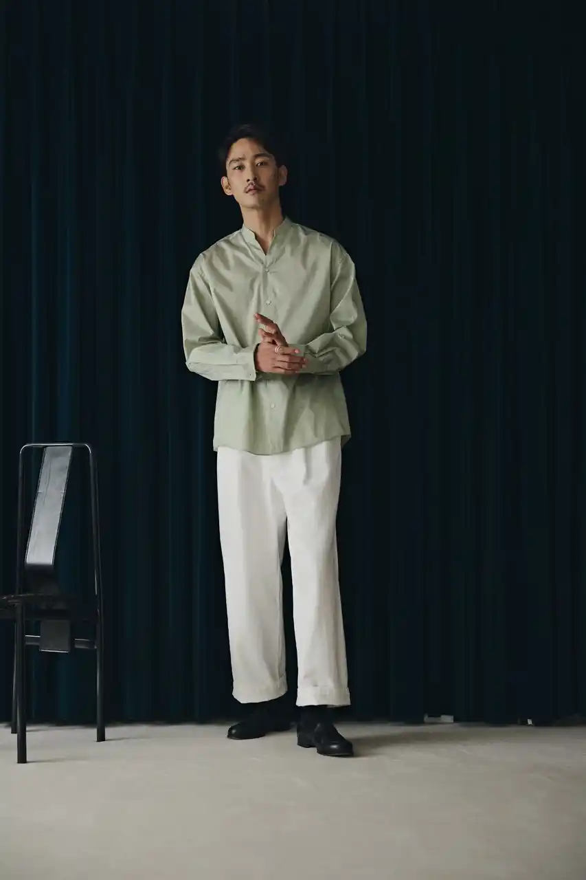 ・SHIRT:「OtoNANO」大人のワイドシャツバンドカラー ストライプ長袖 ¥9,900(税込) |