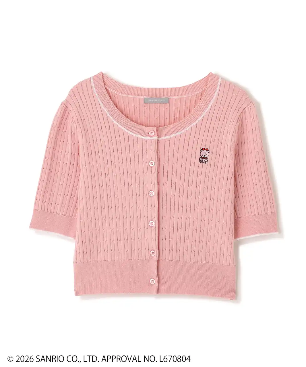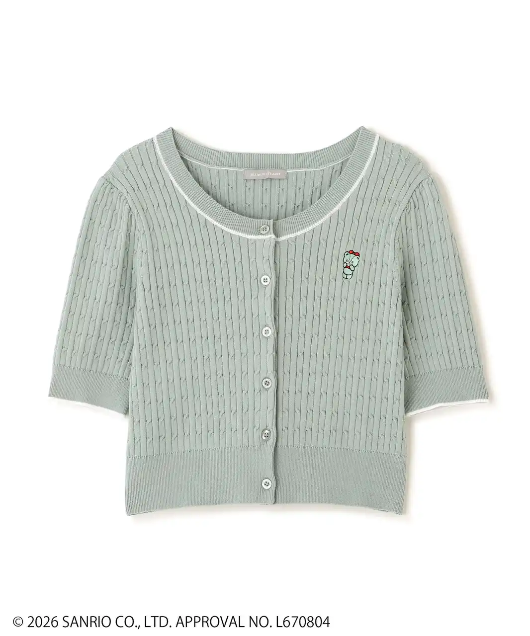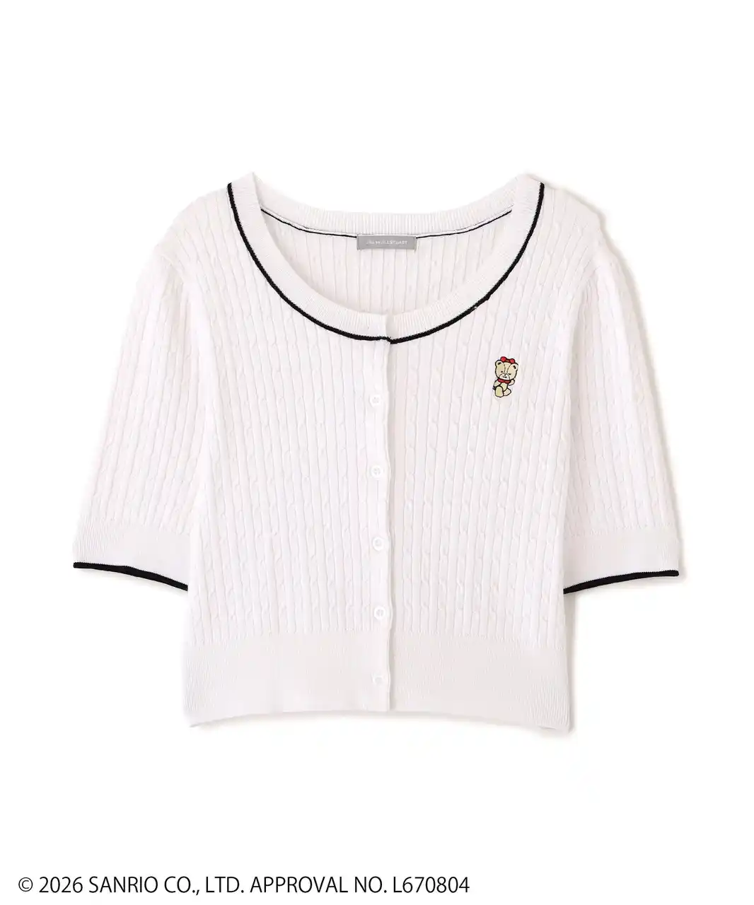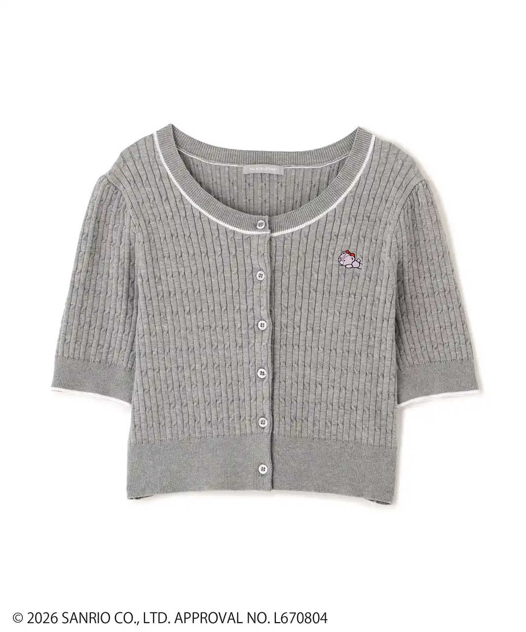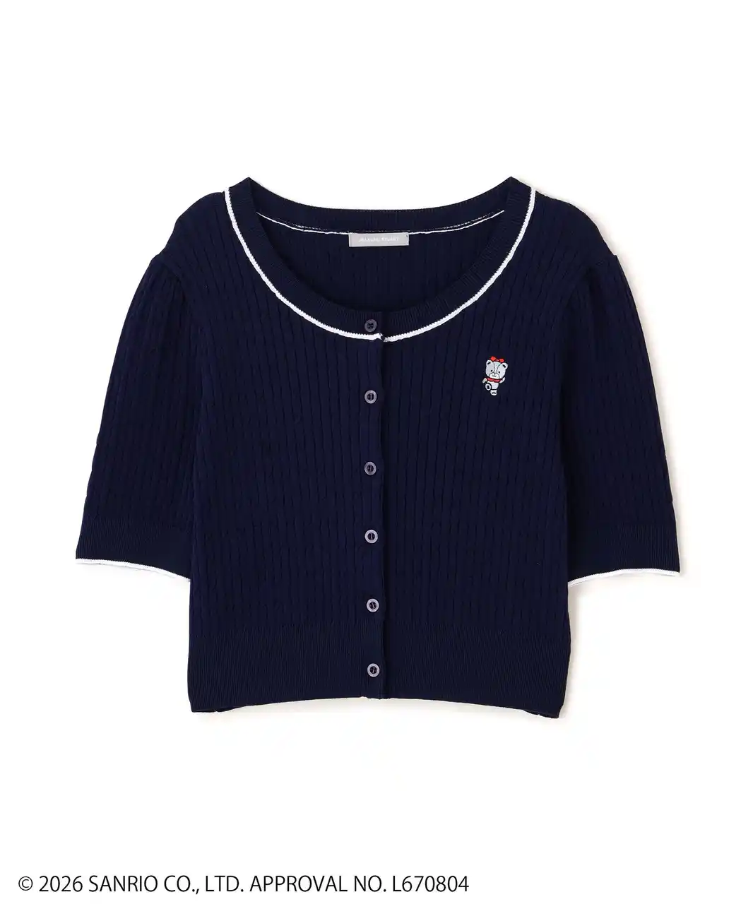 「タイニーチャム」コラボの半袖ニットカーデ。タイニーチャムをイメージしたカラーに合わせて、6色展開。ニットのカラー展開はコーディネートしやすい配色にし、日常的に「タイニーチャム」を着こなせるようにデザインに落とし込みました。襟ぐりと袖口の配色ラインがポイント。 |