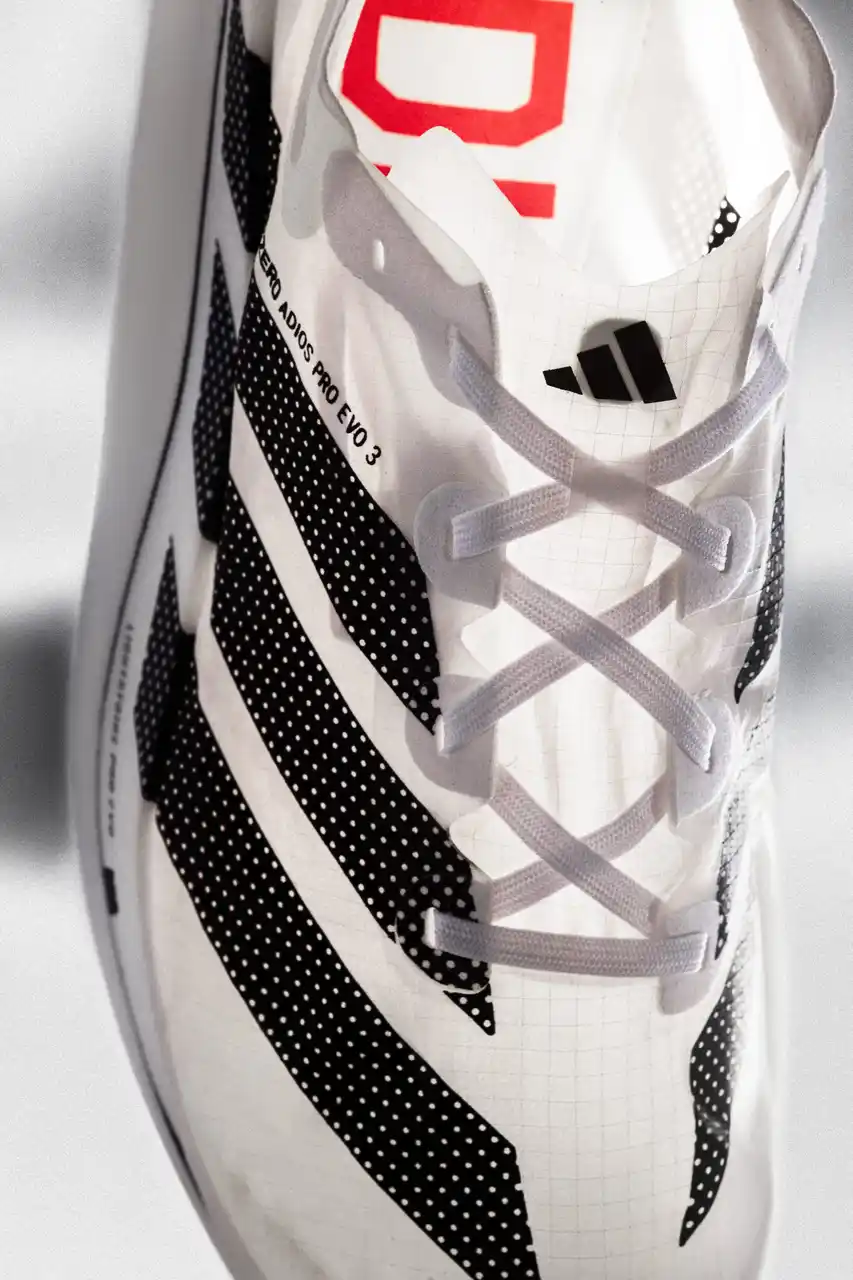 速さのためのすべてを支えてきた「ADIZERO」シリーズの開発の蓄積をもとに誕生した「ADIZERO ADIOS PRO EVO 3」は、マラソンや長距離ランニングにおけるレース用シューズの可能性を追求して設計されたモデルです。アディダス初の100g未満のレース用シューズという開発目標のもと、軽量性とパフォーマンスの両立を図っています。プロダクト部門バイスプレジデントのステファン・スホルテンは、「目指したのは、重量を2桁台に抑えながら、これまで以上のパフォーマンスを実現することでした」と述べ、「ADIZERO」シリーズの最新モデルとして登場する「EVO 3」には、スピードと効率性の追求に向けた複数の新要素が採用されています。 |