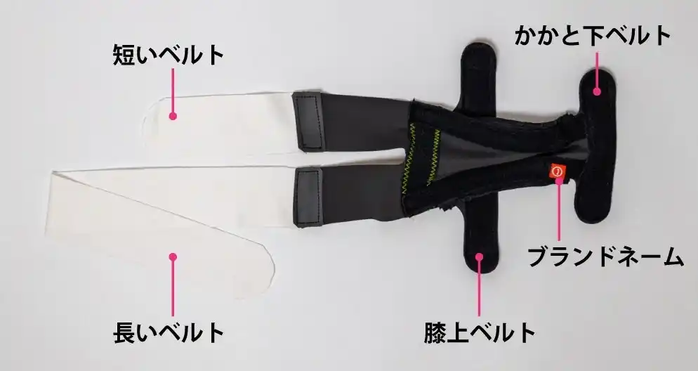 (1)靴下のように履かせて、ベルトを重ねるスムーズな装着 |