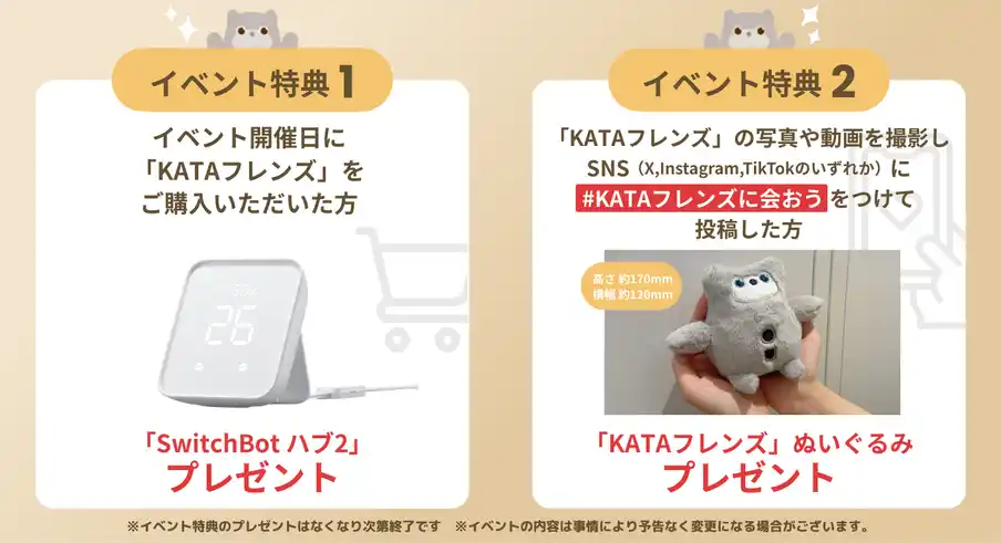 イベント期間中、対象店舗でKATAフレンズをご購入の方に「SwitchBot ハブ2」をプレゼント |