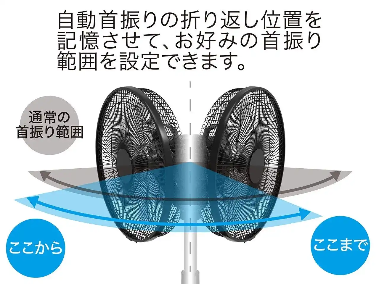 | ・「ピタッと首振り」機能搭載。自動首振りをお好みの範囲に設定できる。 | |||||||||