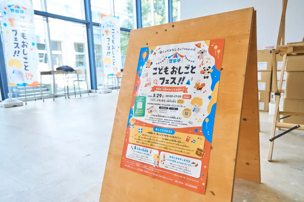 世田谷こどもおしごとフェス実行委員会(株式会社ケシオン・教育の環・HOME/WORK VILLAGE) が企画・運営を行った、小中学生向けキャリア教育・職業体験イベント「世田谷こどもおしごとフェス!!」が2026年3月29日(日)、世田谷区の「HOME/WORK VILLAGE」にて初開催されました。