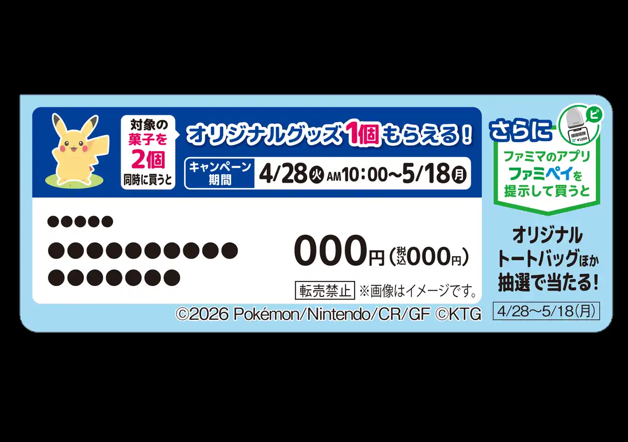 株式会社ファミリーマート(本社:東京都港区、代表取締役社長:小谷建夫)は、2026年9月に創立45周年を迎えます。継続して取り組んできた5つのキーワードを土台とし、「いちばんチャレンジ」を合言葉に活動をしていきます。このたび「いちばんおいしい」「いちばんわくわく楽しい」を目指した取り組みの一環として、株式会社ポケモン(本社:東京都港区、代表取締役社長:石原恒和)から発売中のNintendo Switch 2 ソフト 『ぽこ あ ポケモン』キャンペーンを2026年4月28日(火)から、全国のファミリーマート約16,400店舗にて実施いたします。 |