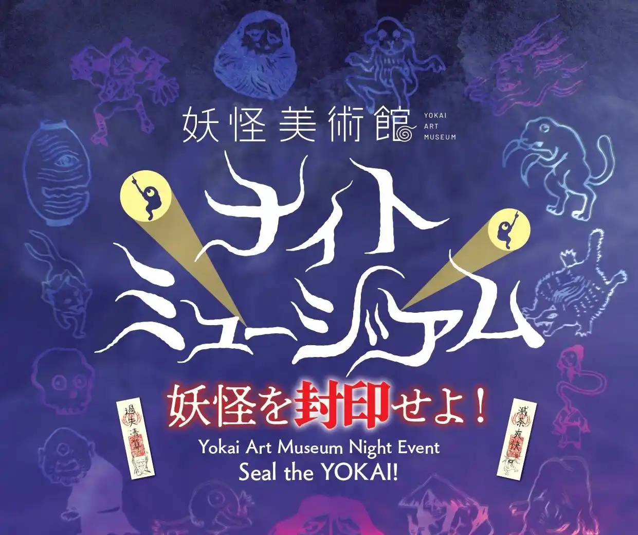妖怪美術館(館長:柳生忠平)は、ゴールデンウィーク期間と土日祝の夜限定で「ナイトミュージアム」イベントをスタート。閉館した後に展示している妖怪たちが逃げ出そうとしているという設定で、入館者に「妖怪たちを封印する」ゲームを体験してもらうというイベントです。閉館後の静まり返った館内を懐中電灯を手にめぐる夜の妖怪美術館はゾクゾクの連続。日中の美術館ではできないスペシャルな体験を提供します。