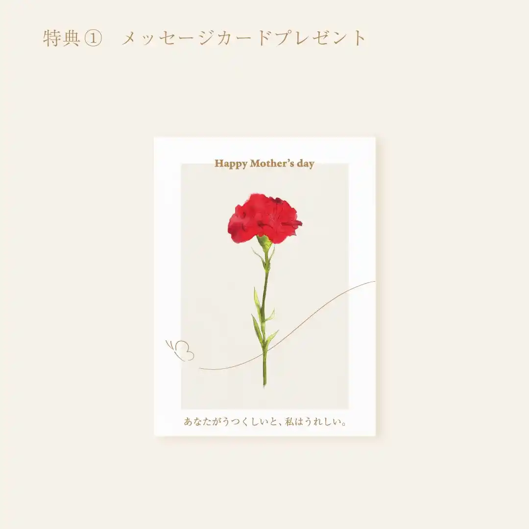 特典4. セットのご購入に限らず、母の日のギフトをお求めの方にもメッセージカードをプレゼント(直営店舗のみ) |