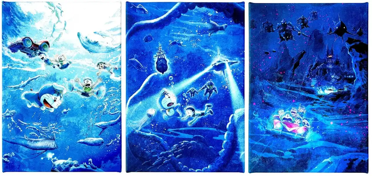 | 「映画ドラえもん」シリーズ45作目となる『映画ドラえもん 新・のび太の海底鬼岩城』の劇場バナービジュアルやエンドロールなどのイラストがアート作品として登場。 | ||||||||||||||||